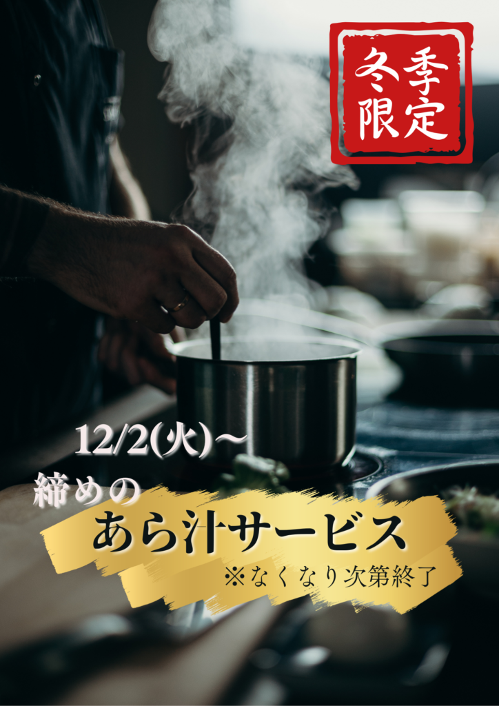 チラシには締めのって書いてありますが、喝菜のあら汁は丁寧に時間をかけてしっかりと出汁を抽出していますので、酒の肴になります!